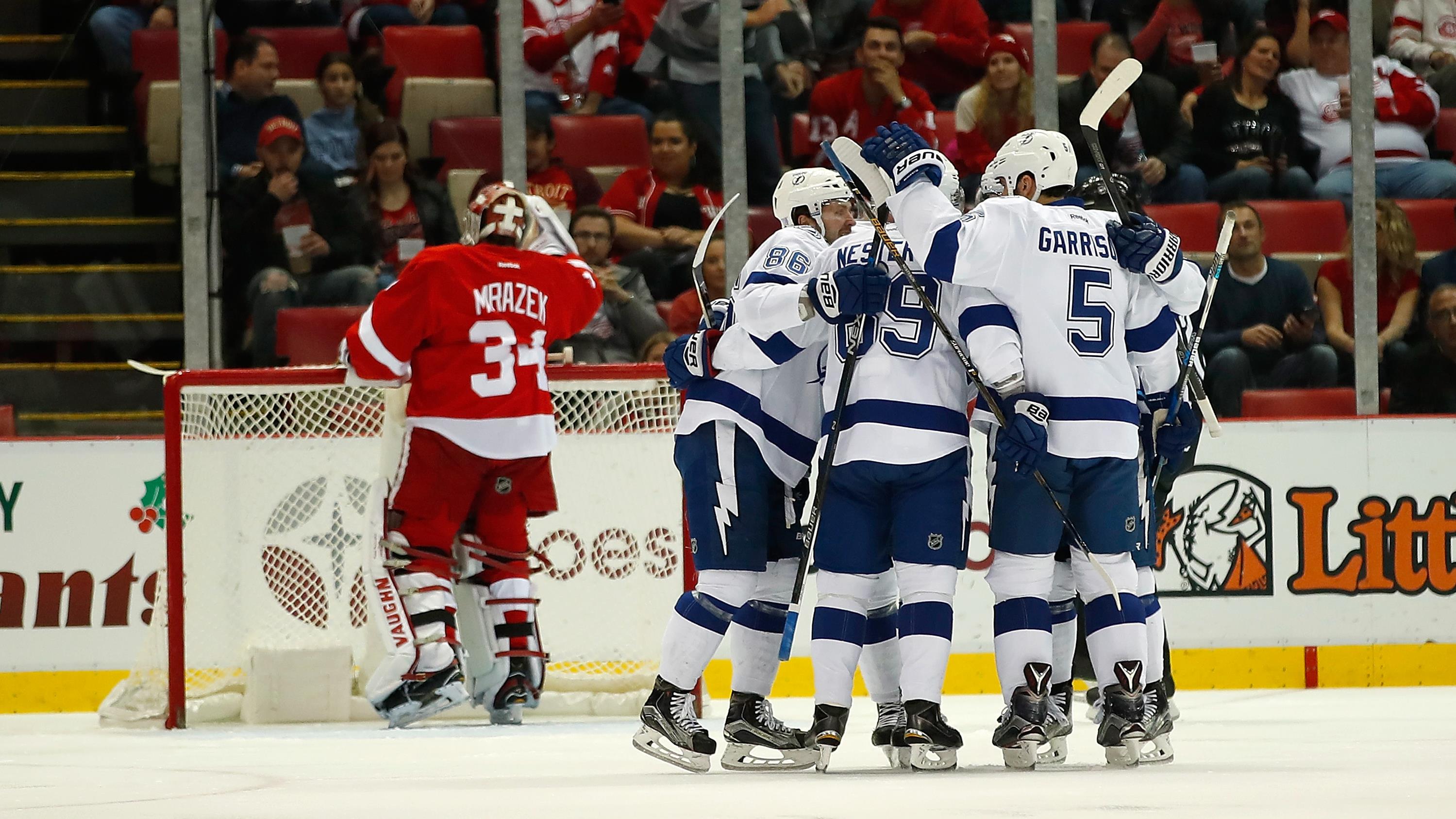 Nikita Kucherov a marqué à 3:28 de la prolongation pour propulser le Lightning de Tampa Bay vers un gain de 2-1 contre les Red Wings de Detroit, vendredi soir, au Joe Louis Arena.
